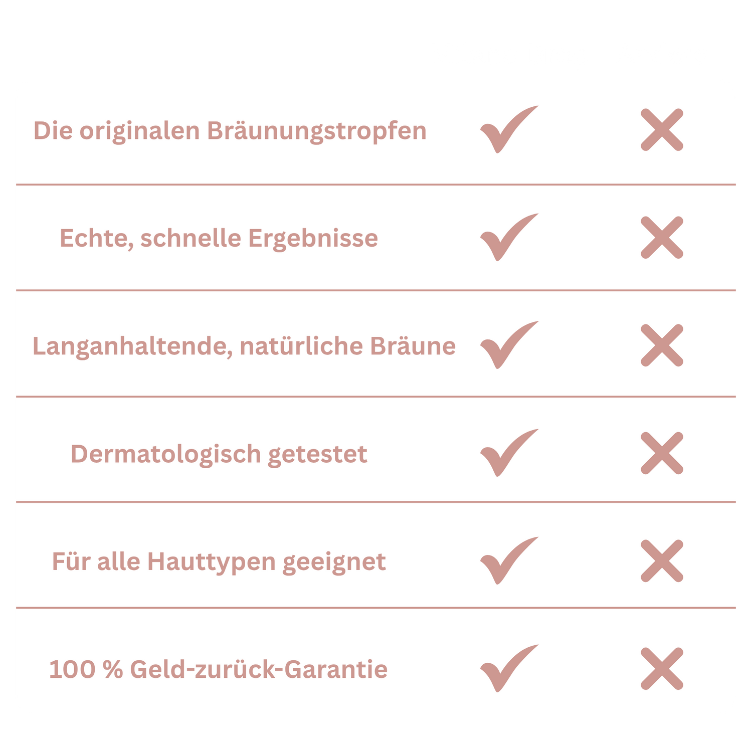 Überzeuge dich selbst! Unsere Formel sorgt für gleichmäßige, natürlich aussehende Ergebnisse, die sich schrittweise entwickeln – so behältst du die volle Kontrolle über deine perfekte Bräune. Keine Flecken, kein künstliches Orange – nur eine sanfte, sonnengeküsste Farbe, die lange hält.