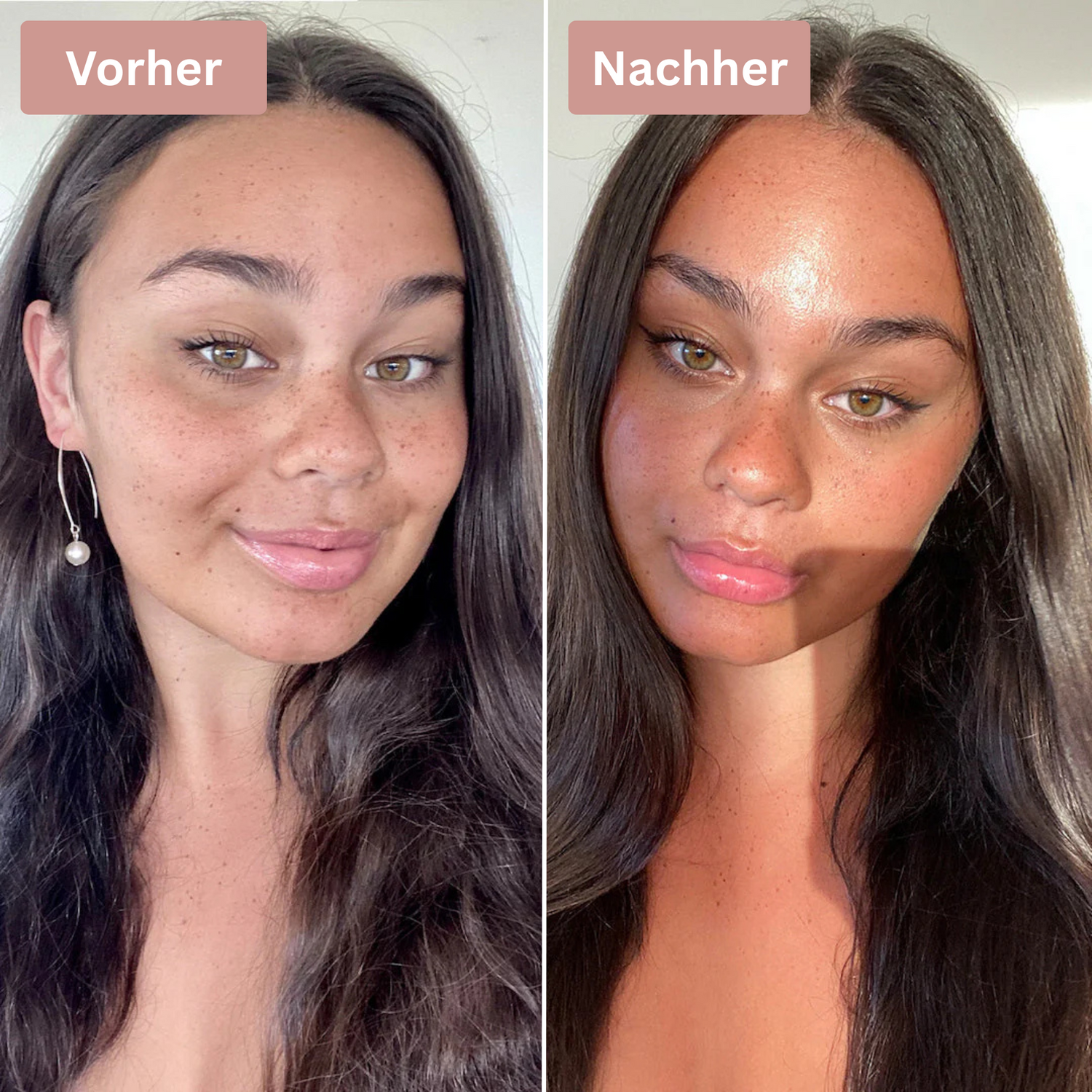 Verabschiede dich von fleckiger Bräune und ungleichmäßigen Anwendungen! Unsere innovativen Bräunungstropfen wirken von innen, um dein natürliches Melanin zu aktivieren – für eine nahtlose, aufbaubare Bräune, ganz ohne Sonne oder Streifen. Einfach in deine tägliche Routine integrieren und zusehen, wie sich deine Farbe mühelos vertieft.